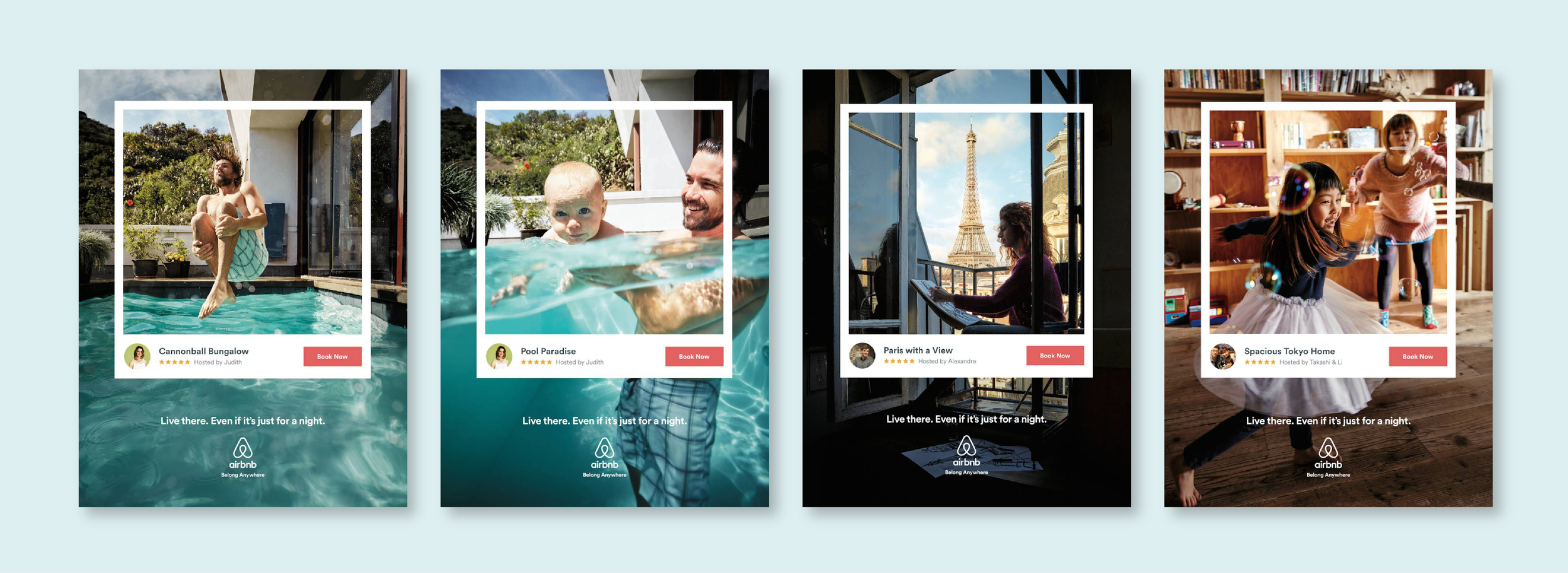 The higher purpose of Belonging shifted the brand's language and messaging from location and price to focus on the warmth and welcome of no longer feeling like a tourist in an unknown place. Rather than showing a dreary room listing, photography and film boldly captured the real people and places that make these magical travel experiences and special connections possible.